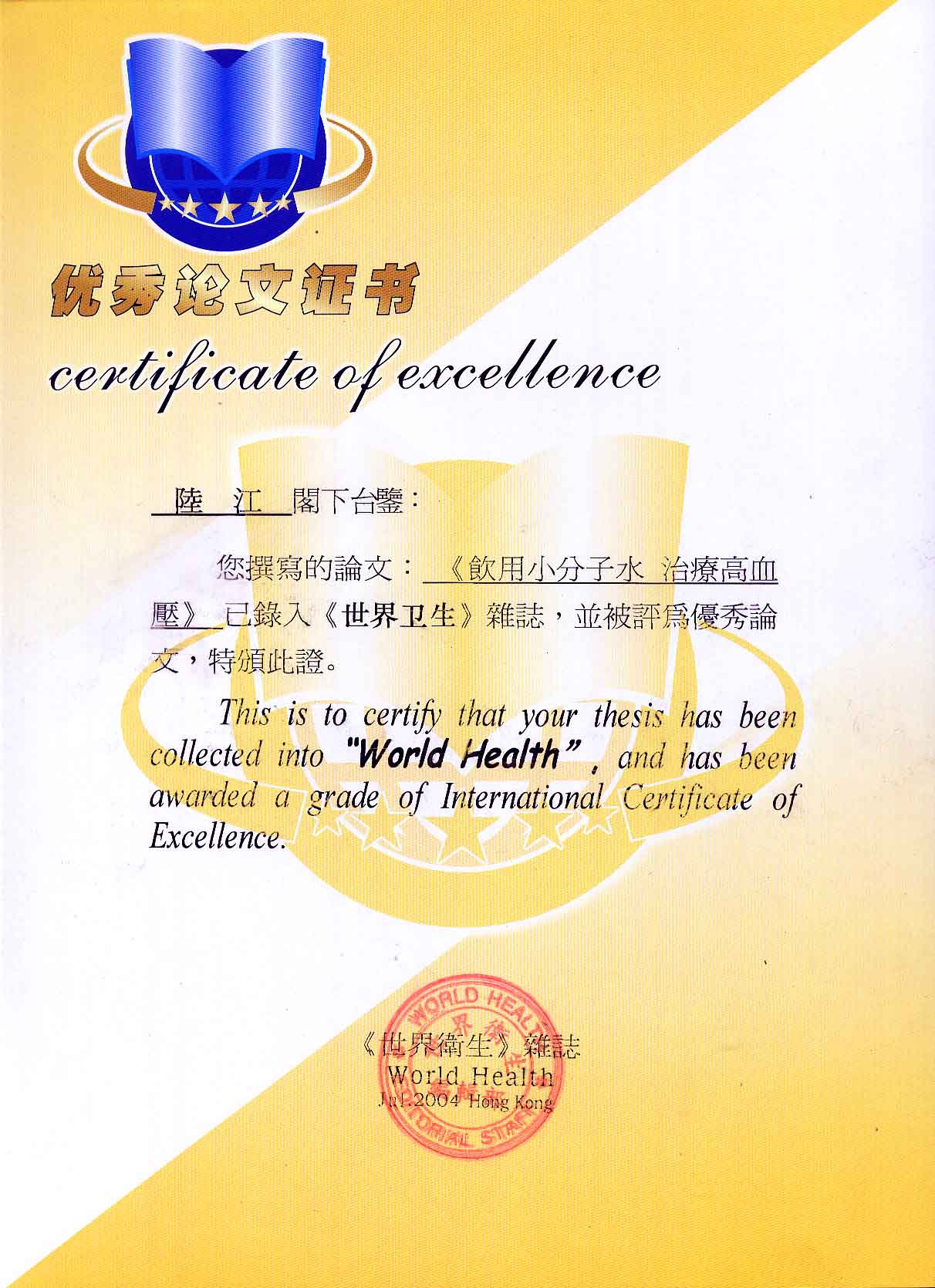 -----我是從事建筑的高工,本來沒有資格去攻克醫(yī)學(xué)難題,卻為了自身健康才扣響醫(yī)學(xué)的大門。由于我1990年患高血壓,因怕中風(fēng)才研究發(fā)明了離子水瓶,我把水處理成微小分子團(tuán)水,飲用后治愈了高血壓。便于1993年底送到三家省級醫(yī)院做臨床試用4個月。經(jīng)北京和廣西醫(yī)學(xué)專家鑒定:"降脂降壓效果好"," 能擴(kuò)大心腦動脈流量,改善心腦電圖以及微循環(huán)","對治療心腦動脈粥樣硬化、高血壓、高血脂有良好的醫(yī)療保健作用。""產(chǎn)品的技術(shù)性能和療效達(dá)到了同類產(chǎn)品的國內(nèi)領(lǐng)先水平,經(jīng)廣西醫(yī)學(xué)科學(xué)情報研究所檢索,未見國外有類似報道。"中國醫(yī)學(xué)科學(xué)院張正國教授從美國國立醫(yī)學(xué)圖書館數(shù)據(jù)庫存Medline檢索英俄文資料,均未見類似報告。2000年上市后,我為了對消費者負(fù)責(zé)而繼續(xù)觀察研究,一直通過《信譽卡》和《質(zhì)量跟蹤調(diào)查書》向患者承諾療效,請用戶使用6個月后反饋效果。和脂壓患者飲用2至5個月內(nèi),消除癥狀,停服藥物,血壓正常;冠心病患者飲用3~5個月逐漸減輕至消除心絞痛、房顫等癥狀,不再服藥,飲用1年左右心電圖正常,經(jīng)冠脈造影掃描無明顯狹窄,表明冠心病痊愈。大量患者還反映許多衰弱器官被修復(fù),讓前列腺增生、慢性咽喉炎、慢性氣管炎、支氣管炎、慢性胃炎、腸炎和膽囊炎等不藥而愈;2型糖尿病患者是因為胰島衰弱致病,飲用該水半年至一年,逐漸減藥至停藥,血糖尿糖正常,真正治愈2型糖尿病。中風(fēng)后遺癥患者飲用六七個月,可逐漸減輕至消除肢體和語言障礙,表明飲用該水能讓壽命很長的神經(jīng)元細(xì)胞逐漸修復(fù),奇跡般地恢復(fù)肢體和語言功能。飲用后還使胸腺和脾臟兩個重要的免疫器官被修復(fù)和增強,產(chǎn)生免疫細(xì)胞多,提高了免疫力,使人不生病或少生病。自此, 飲用微小分子團(tuán)水創(chuàng)造了攻克冠心病、高(低)血壓和糖尿病三大醫(yī)學(xué)難題的奇跡。人們對此感到不可思議,但實踐是檢驗真理的唯一標(biāo)準(zhǔn)。