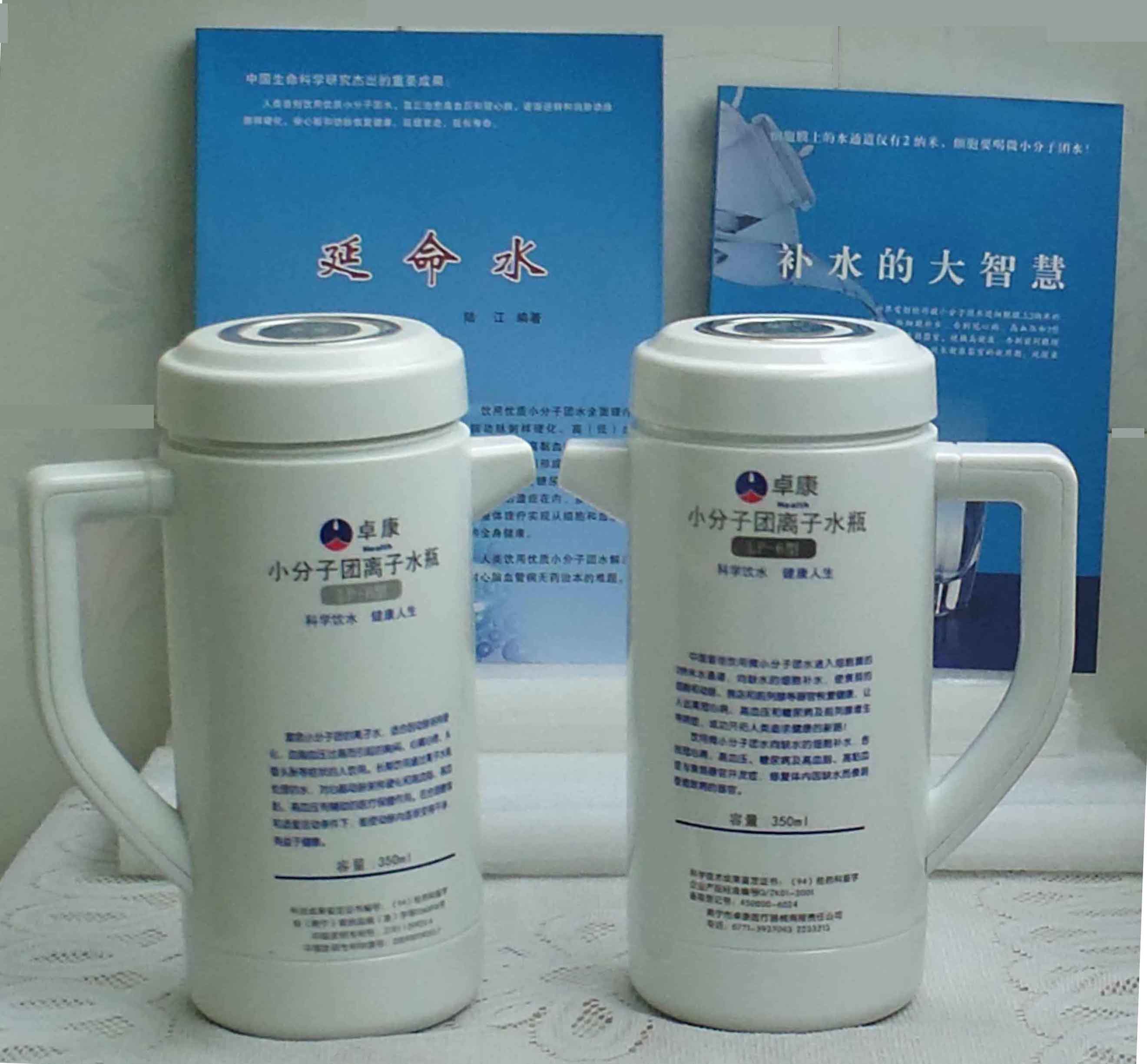 本品大量用戶的使用效果表明,能治愈冠心病、腦動脈硬化、原發(fā)性高(低)血壓、高血脂、高粘血癥、高血尿酸癥(痛風(fēng))和2型糖尿病、衰弱器官并發(fā)癥(前列腺增生、腎衰與尿毒癥)及中風(fēng)后遺癥等療效好。產(chǎn)品配信譽卡。使用壽命30年,不換芯,易清洗。團(tuán)購優(yōu)惠。從郵局匯款,匯費1%,地址按本頁下方地址、聯(lián)系人寫。從銀行匯款,請點擊[聯(lián)系匯款]欄,從工商銀行匯款,建設(shè)銀行、農(nóng)業(yè)銀行匯款,均免收匯費,匯款后20--30分鐘內(nèi)發(fā)短信,可用微信轉(zhuǎn)帳,均免匯費,微信號即手機(jī)號13768308380。匯款后,告知你的姓名和地址,我公司聯(lián)系人手機(jī)號是:13768308380。卓康牌離子水瓶為我公司獨家生產(chǎn),郵購產(chǎn)品配《補水的大智慧》彩印書一本,另配四季出版社出版的新書《補水的大智慧》一本,并配光盤一張(含央視主持人釆訪陸江的對話視頻)。目前市場和"淘寶網(wǎng)"上有人兜售假冒的偽品,望讀者審察辯別真?zhèn)危旒僬哓飧`假冒本公司的各種認(rèn)證、獲獎獎項、專利號和外包裝盒上的中英文字,包括科技成果的鑒定意見等,請讀者注意防偽。如何識別假貨?已經(jīng)買了假貨怎么辦?(請點擊[打假掠影][打假掠影])。
