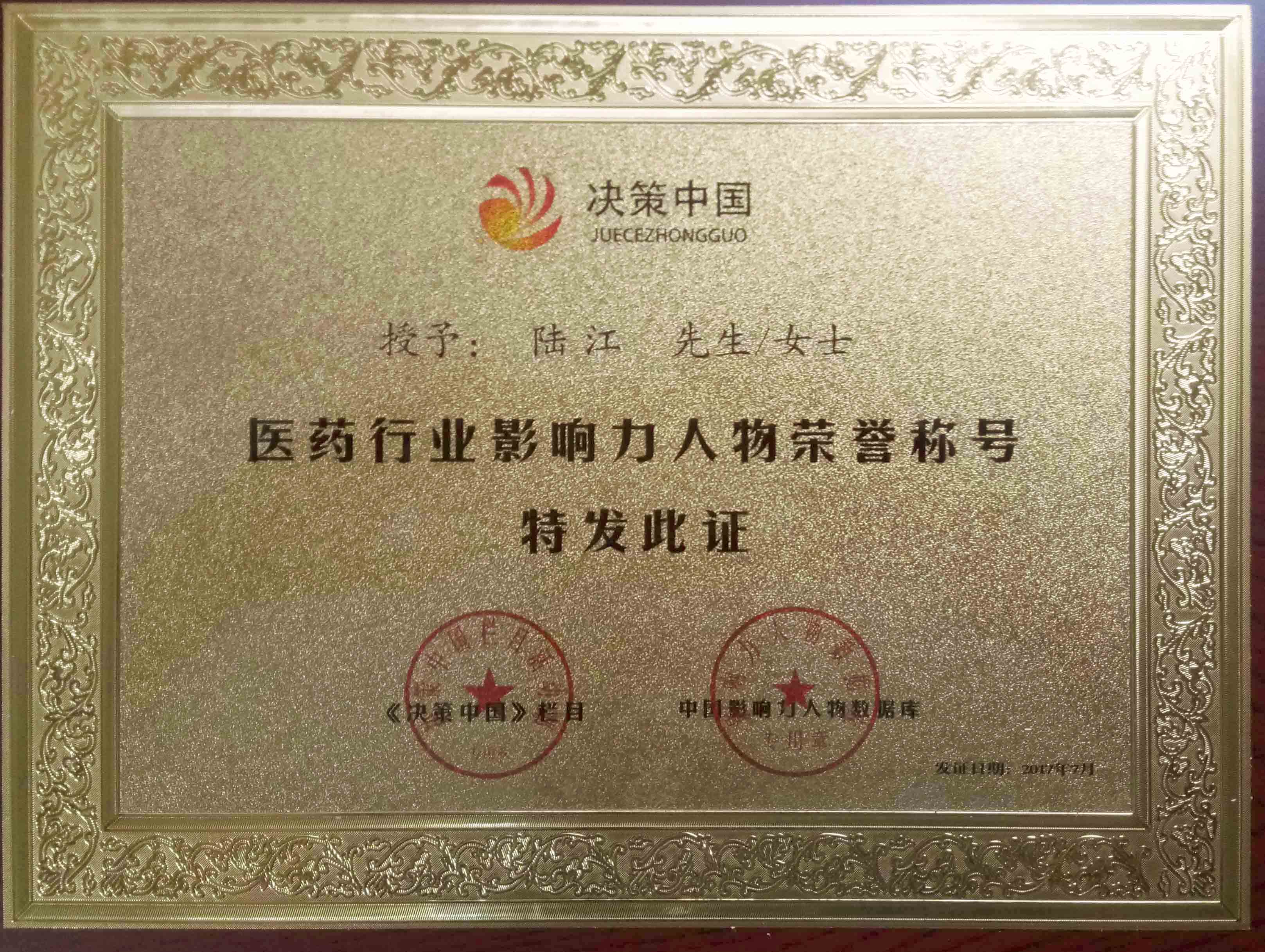 陸江榮獲引領(lǐng)行業(yè)發(fā)展杰出貢獻(xiàn)人物證書 --------卓康公司榮獲全國質(zhì)量、服務(wù)、信譽AAA級品牌證書